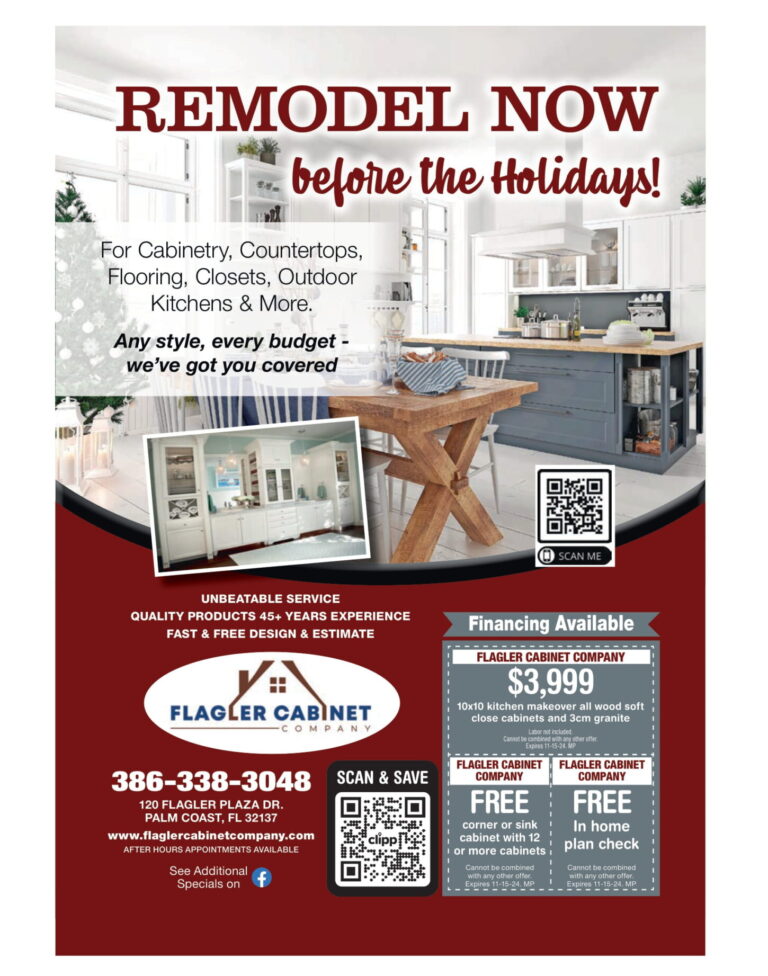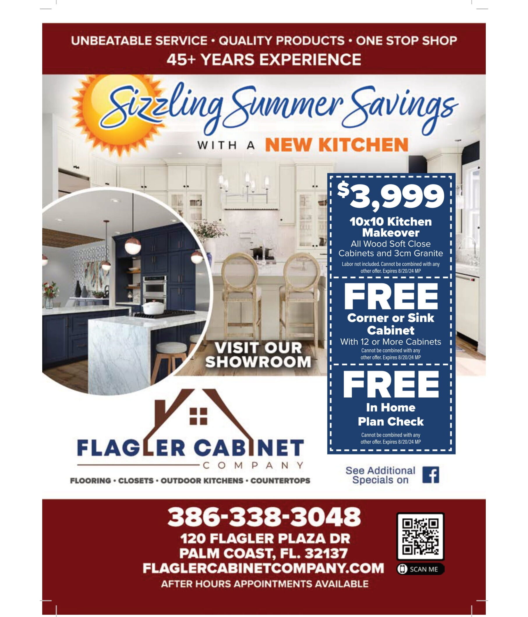 Flagler Cabinet Company offers fast and free design services backed by over 45 years of experience in the industry. Specializing in custom cabinetry, countertop solutions, custom closet design, outdoor kitchen space, and flooring services, they ensure high-quality results tailored to meet the unique needs, styles, and budgets of their clients. Whether you’re planning a complete remodel or a new construction project, their expert team is ready to bring your vision to life with exceptional service and unbeatable value.